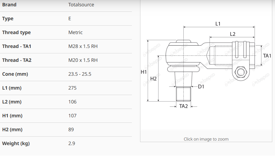 For JOHN DEERE 40 50 TIE ROD LEFT - M28 X 1.5 RH ZF- APL.350
